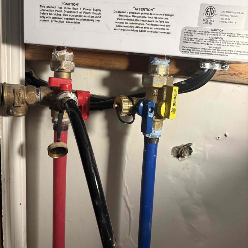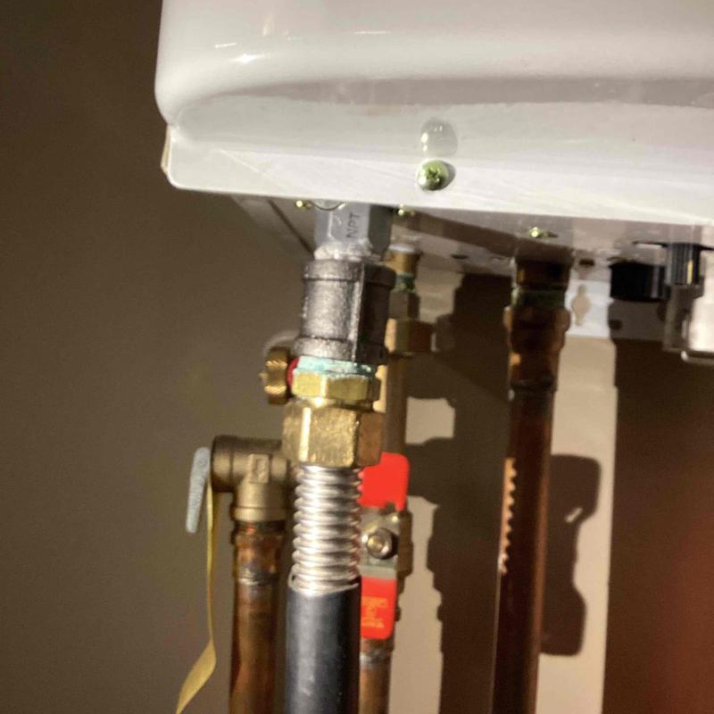 A plumber replaced the cold side valve on a tankless water heater in Rossville, Georgia, ensuring accurate temperature regulation and efficient water flow during winter months.