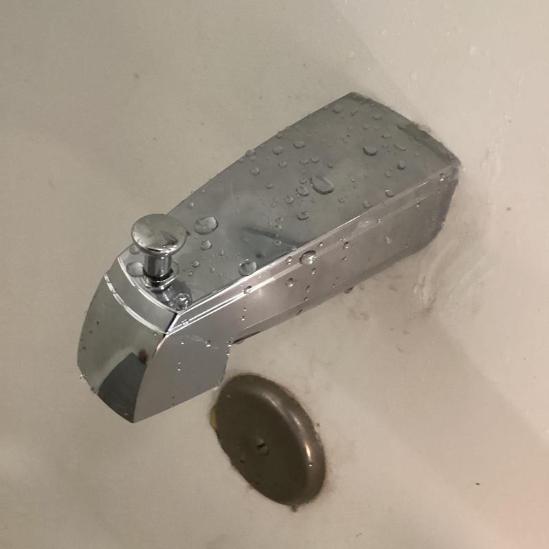 A plumber in Chattanooga, Tennessee applied plumbers' putty to a guest bathtub to stop a leak. After completing the repair, they restored the water supply and confirmed there were no further leaks.