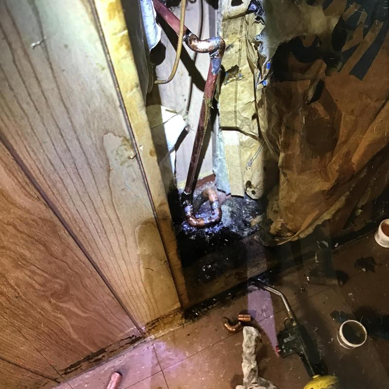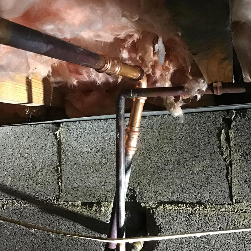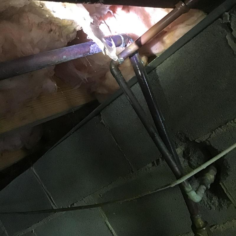 A plumber repaired a leak in copper pipes located in a crawl space. This service took place in Fort Oglethorpe, Georgia. The work involved identifying the damaged section and restoring the pipe to prevent further water loss and structural damage.