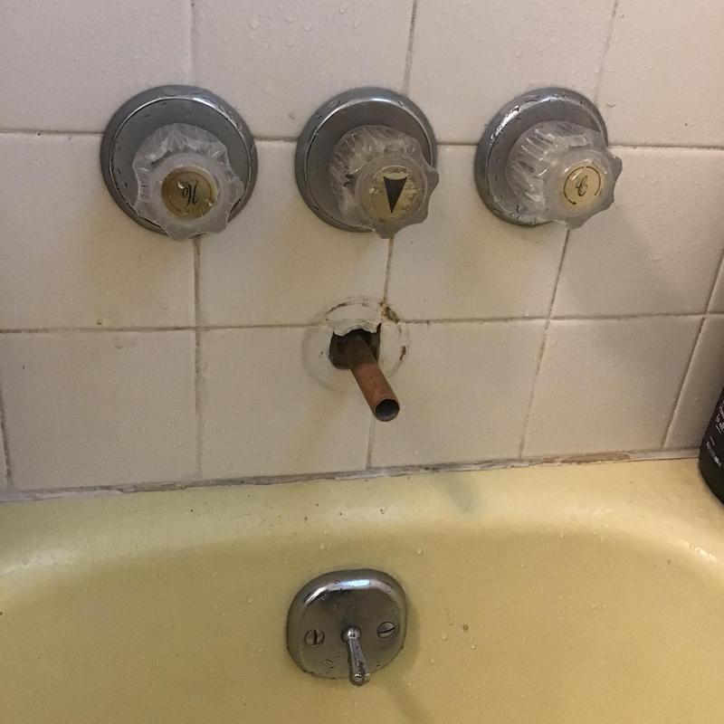 A plumber in Chattanooga, Tennessee replaced a faulty tub and shower faucet. The technician installed a new downspout to direct water correctly to the shower head. This work resolved a diverter issue that prevented proper water flow between the tub and shower functions.