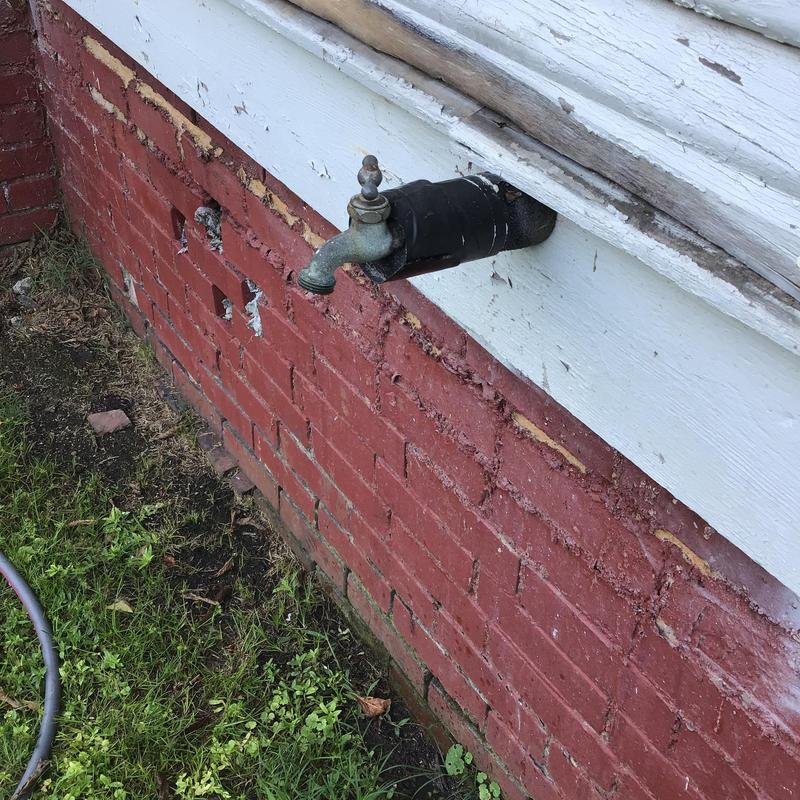 A plumber repaired a leaking main waterline beside a home in Cincinnati, Ohio. The crew dug up the damaged pipe, removed the hose bib, and installed a straight section of pipe to restore water flow. This ensured the main water supply reconnected securely to the house.